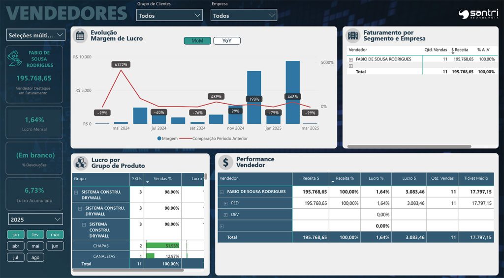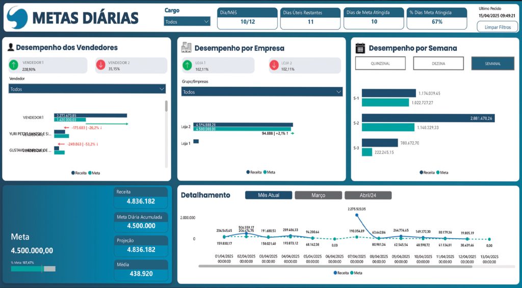 Painéis estratégicos que combinam histórico de vendas, metas e comportamento de clientes, para guiar seu crescimento com previsibilidade e lucratividade.